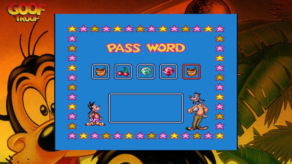 タイトル画面で「PASSWORD」を選択し、以下のパスワードを入力すると、「ステージ2」からスタートすることができるぞ。