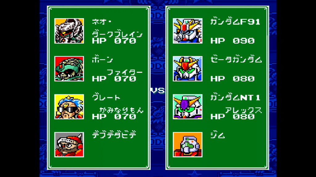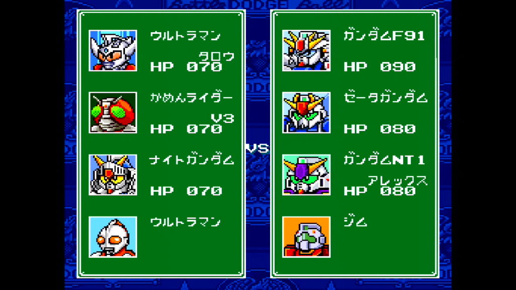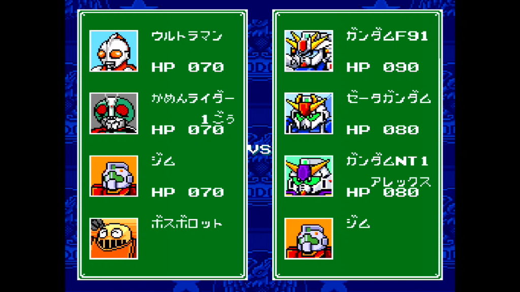 すると、「ウルトラマン」・「仮面ライダー1号」・「ジム」・「ボスボロット」で構成されたチームが使えるようになるぞ。