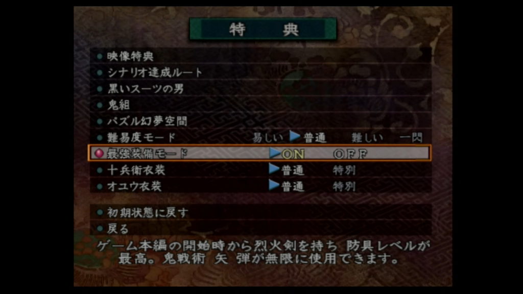 すると、「特典」に「最強装備モード」が追加されるぞ。