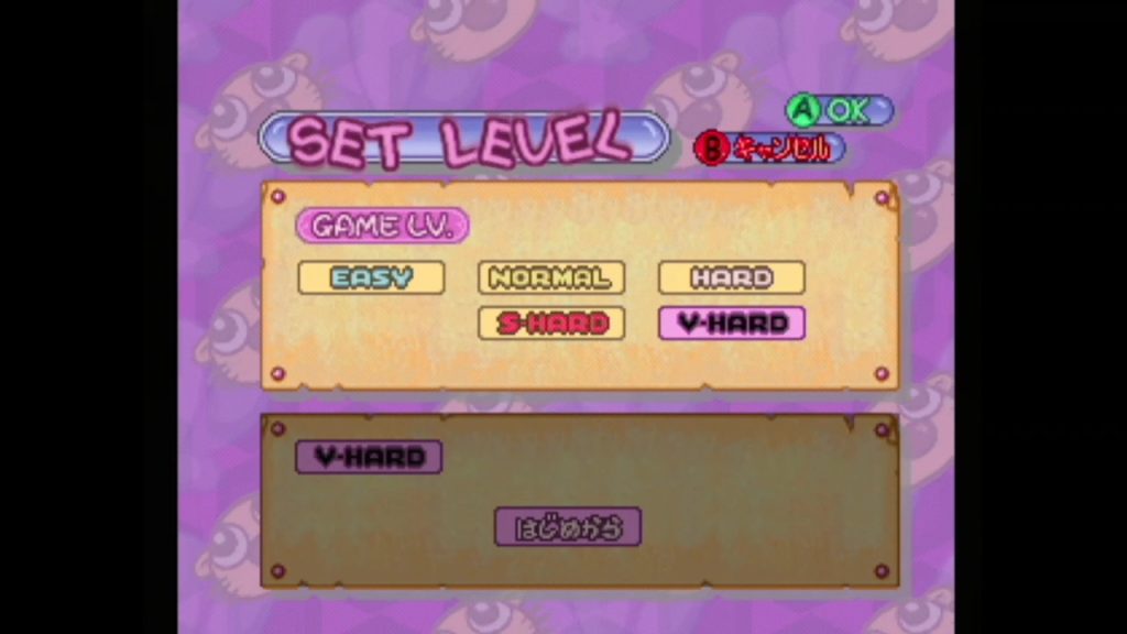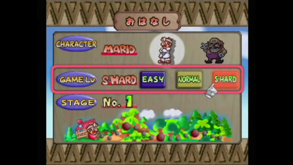 「ひとりであそぶ」モードの「おはなし」のセットアップ画面でゲームレベルの「HARD」にカーソルを合わせたら、「Zボタン」を押そう。