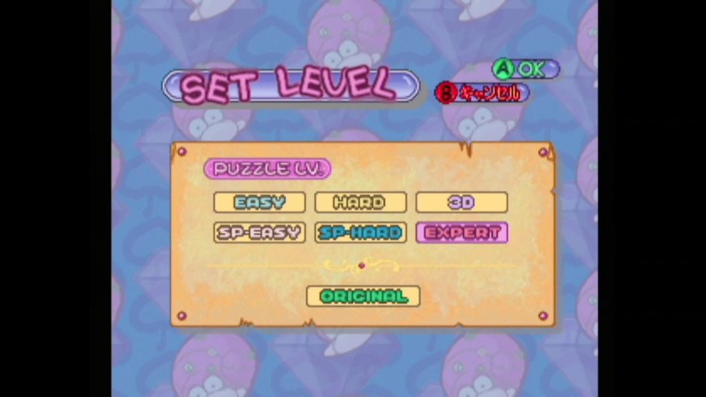 「1人であそぶ」モードの「パズル」のレベルセレクト画面で「Zボタン」を押しながら以下のコマンドを入力すると、「隠し難易度」が追加されるぞ。