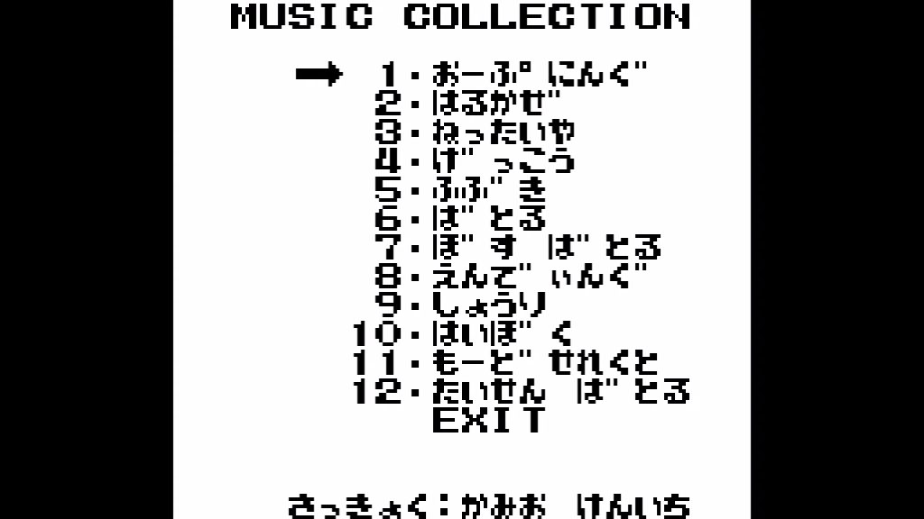 「十字キー」か「セレクトボタン」で曲の選択、「Aボタン」か「Bボタン」か「スタートボタン」で曲の再生・停止ができるのだ。