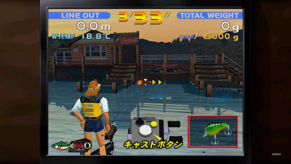 エリアセレクト画面で「キャスティングボタン」+「ルアーセレクトボタン」を同時に押そう。