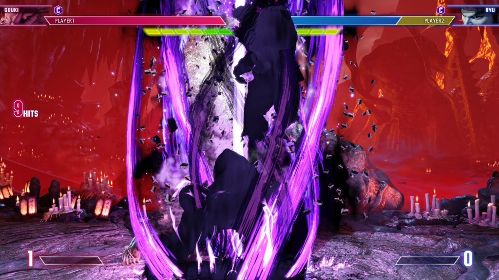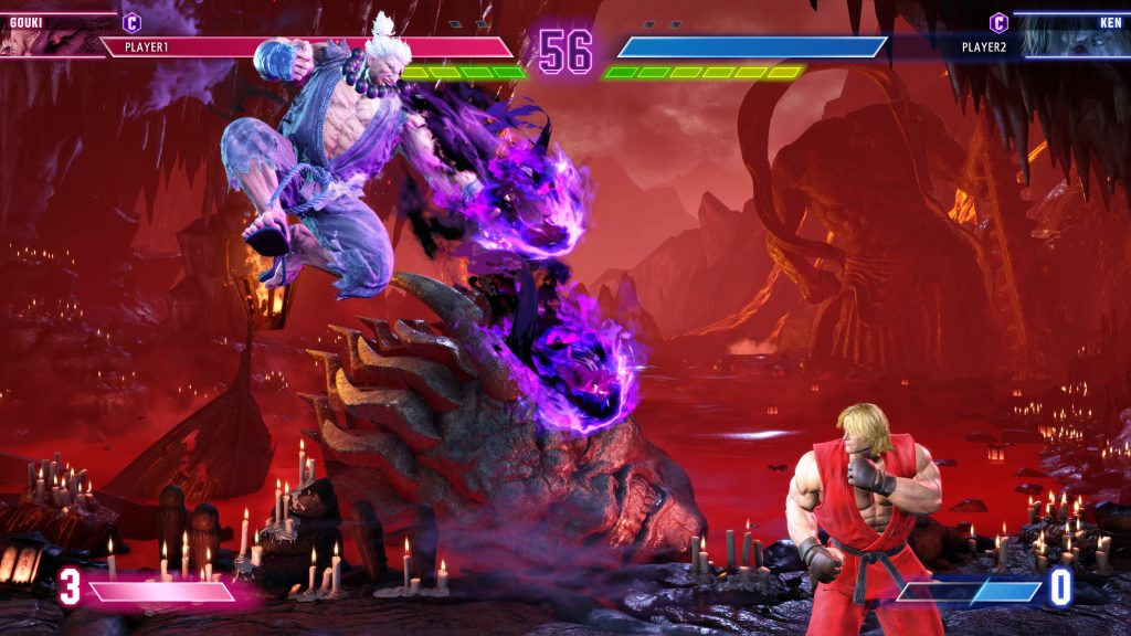 そして、「豪鬼」がおにぎりを食べ終えると、スーパーアーツゲージが最大になり、以下の「必殺技」と「スーパーアーツ2」が追加されるのだ。