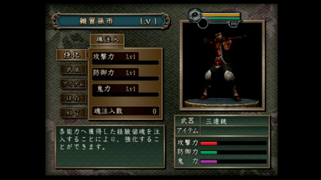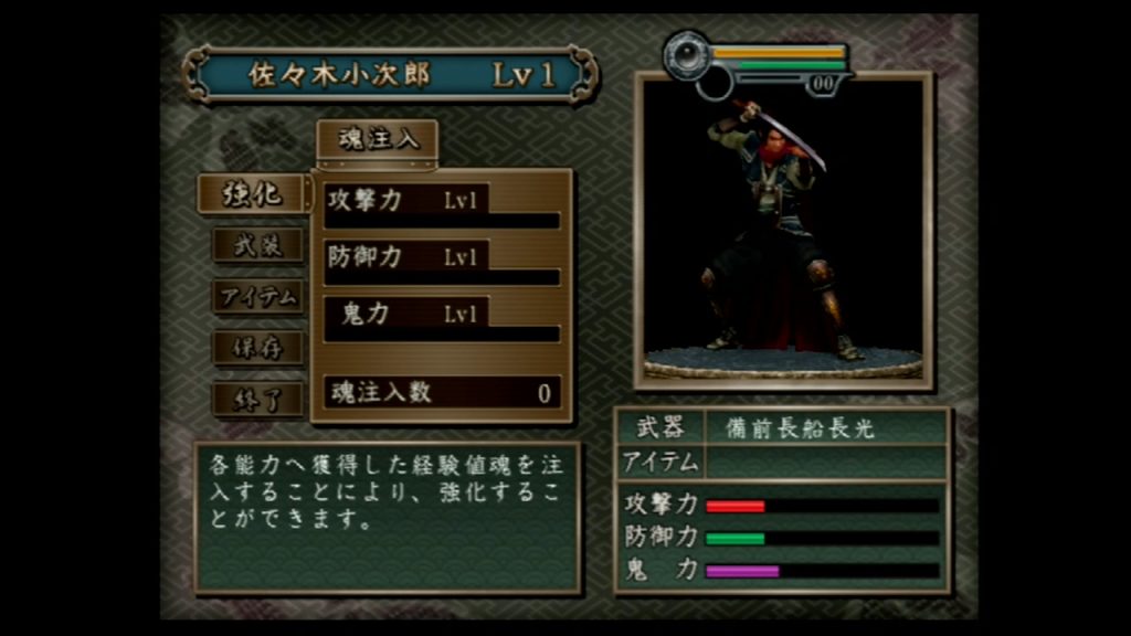 - 『鬼武者3』のセーブデータが入ったメモリーカードを使って本作を起動する。