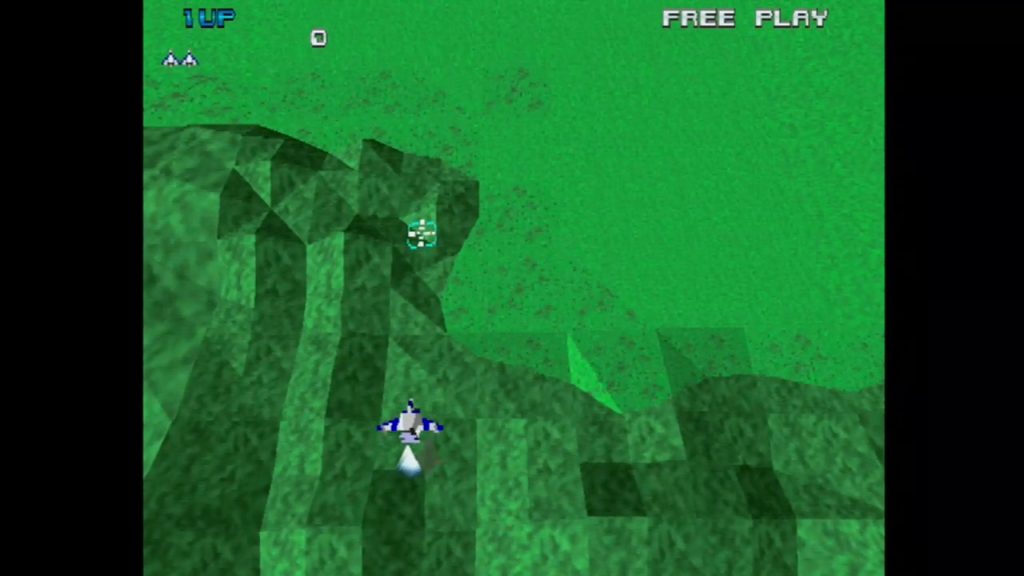 『ゼビウス3D/G』のタイトル画面で「GAME START」にカーソルを合わせたら、「1コン」の「←」+「×ボタン」+「○ボタン」を押しながら「1コン」の「スタートボタン」を自機が移動できるまで押しっぱなしにしよう。