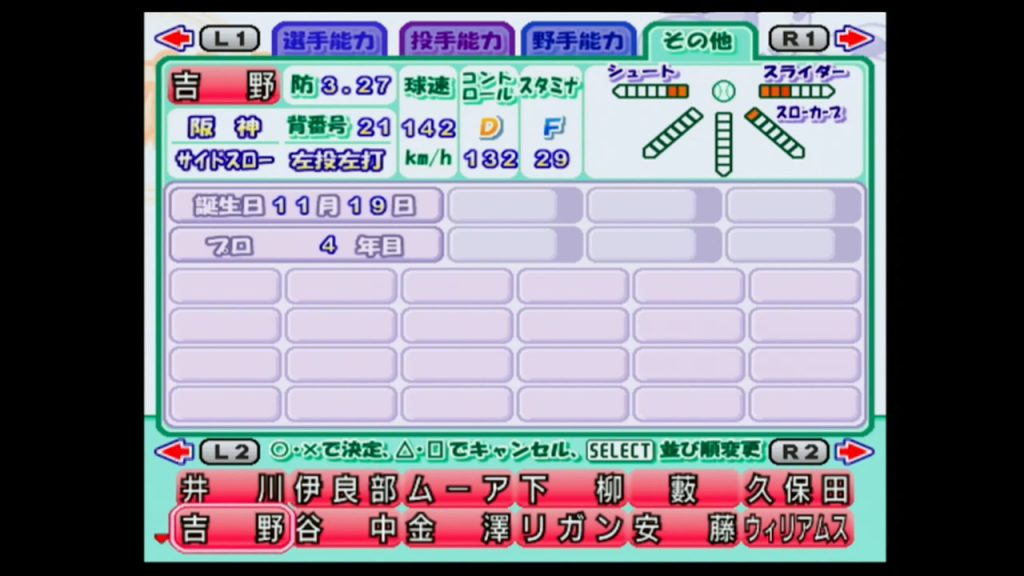 さらに、再度コマンドを入力すると、OB選手のデータを見ることができる。