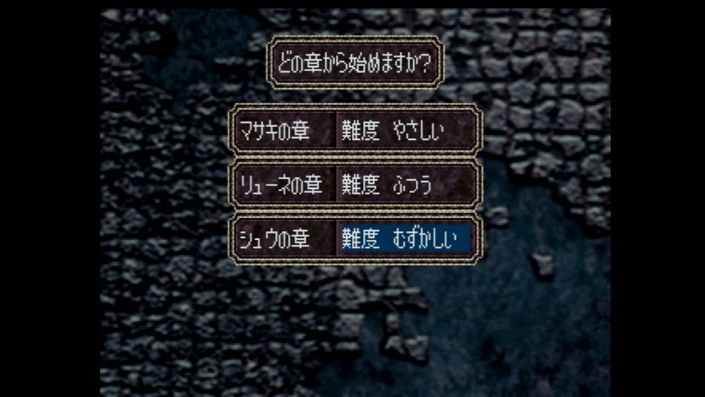 - シナリオ選択画面で「シュウの章」を選択する。