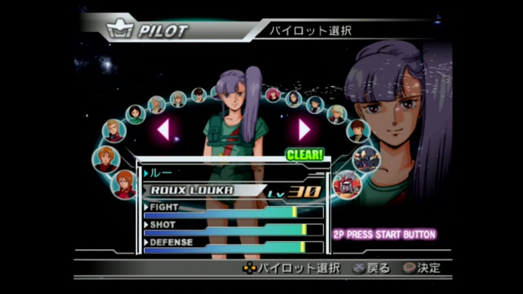| ルー | 以下の条件をすべて満たす 「オフィシャルモード」を「ハマーン」でクリアする 「オリジナルモード」を「ジュドー」でクリアする |