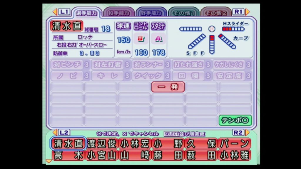 さらにこの状態で再度コマンドを入力すると、OB選手などのデータを見ることができる。