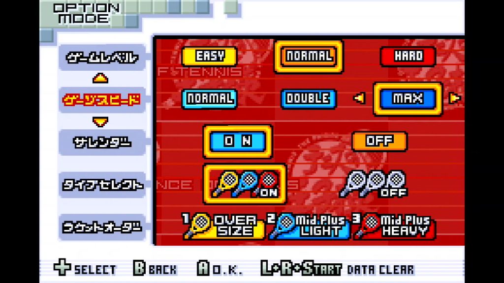 「ソロプレイ」モードの「練習試合シングルス」か「練習試合ダブルス」にカーソルを合わせたら、「Lボタン」を押しながら「決定ボタン」を押そう。