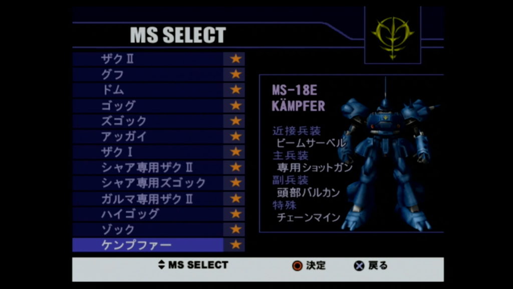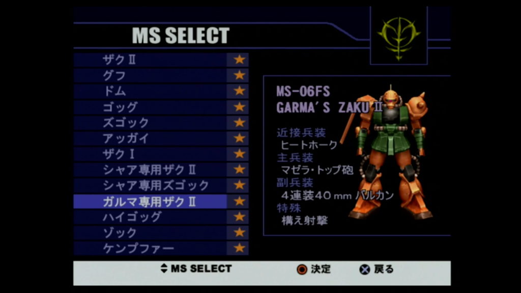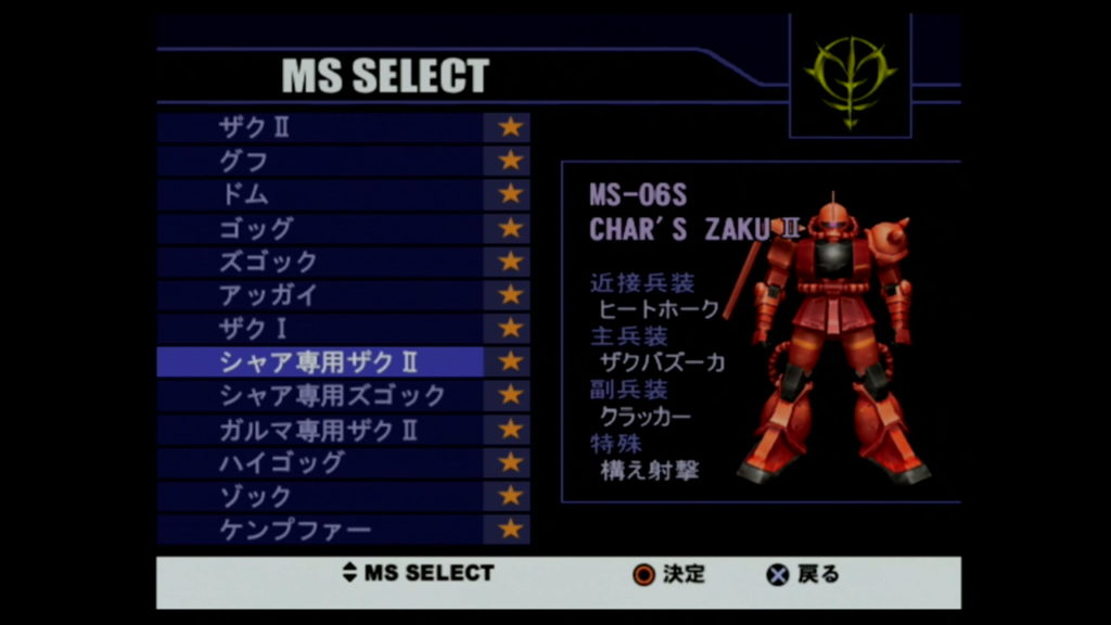 | ザクⅠ | ミッション1~3を「ザクⅡ」でクリアする |