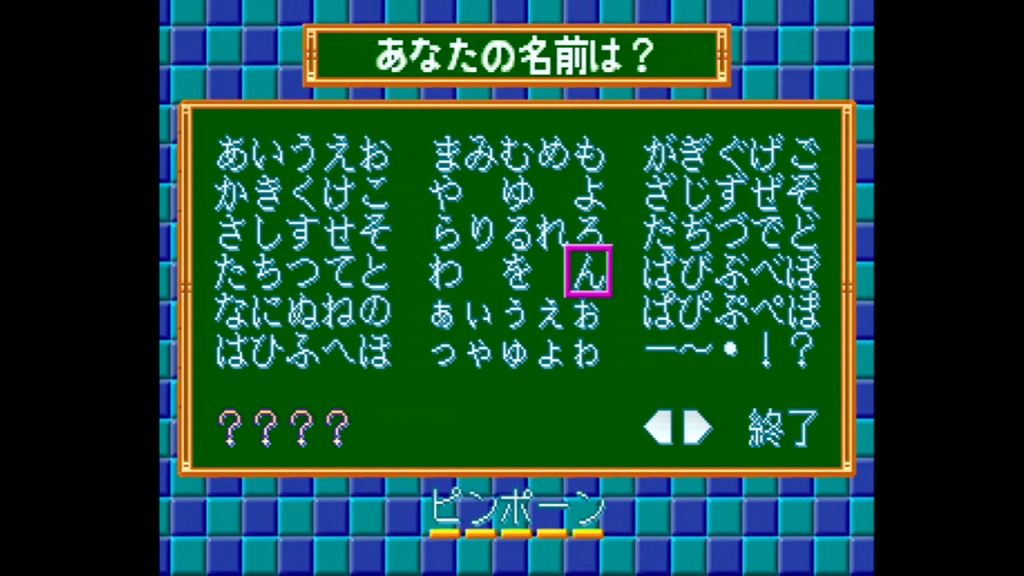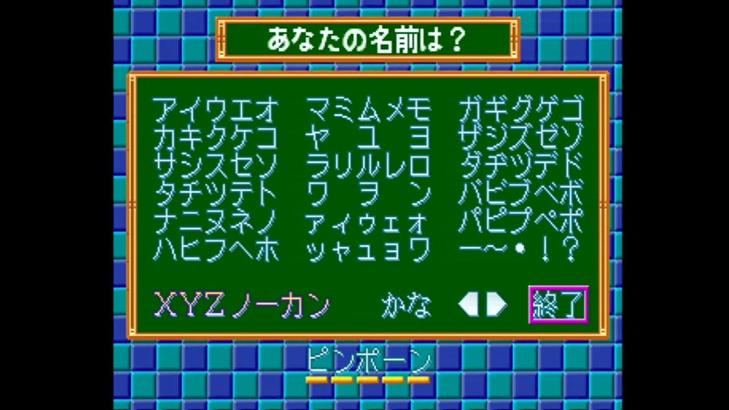 「ひとりでプレイ」モードの「根性」レベルを選択したら、名前を「␣かわちん」と入力しよう。