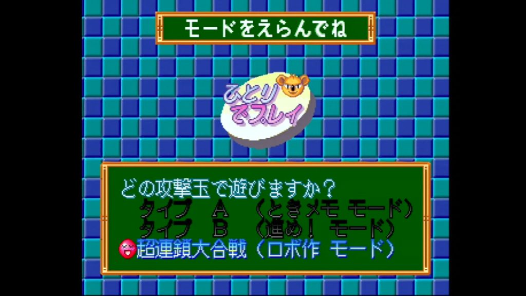 すると、「1Pロボ!」の表示が現れ、「ひとりでプレイ」モードの攻撃選択画面で「超連鎖大合戦(ロボ作モード)」が選択できるようになるのだ。