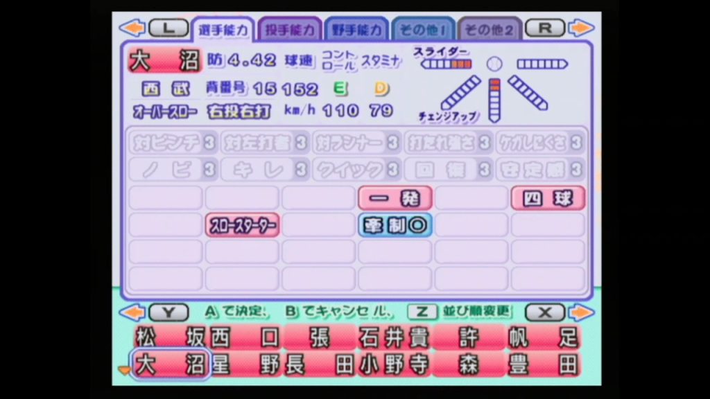コマンドを入力するたびに「対決!伝説選手」モードで獲得したOB選手、「どこでもシナリオ」モードで獲得した選手、「サクセス」モードの選手のデータも見ることができる。