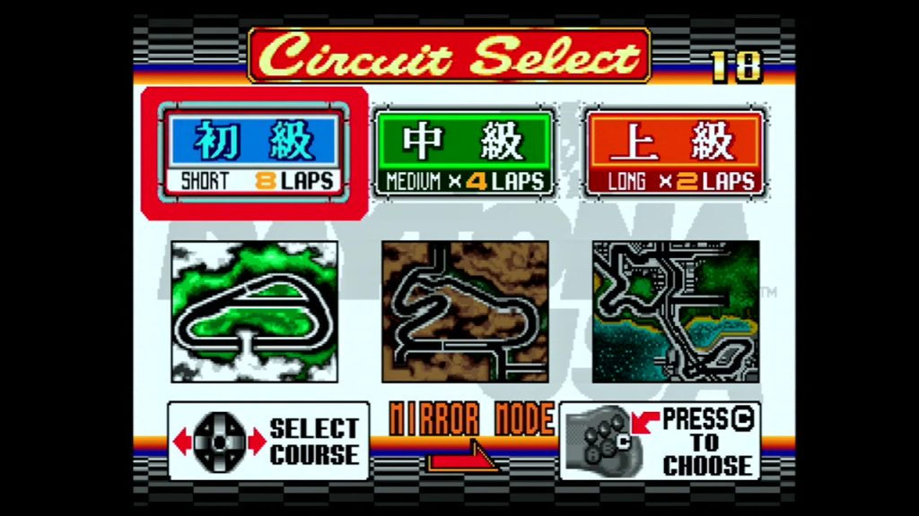 「サターンモード」のコースセレクト画面で「スタートボタン」を押しながら「決定ボタン」を押そう。