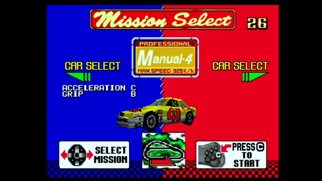 「アーケードモード」か「サターンモード」のトランスミッションセレクト画面で「スタートボタン」を押しながら「決定ボタン」を押そう。