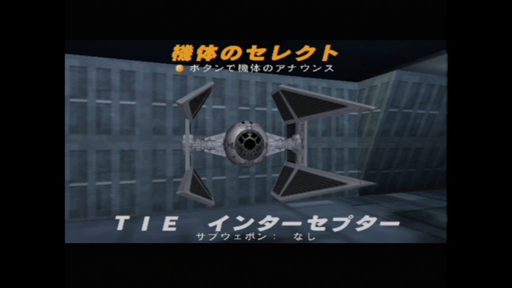 「TIE インターセプター」は機体セレクト画面で「ミレニアム・ファルコン」にカーソルを合わせて「↑」を押すと使えるようになる。