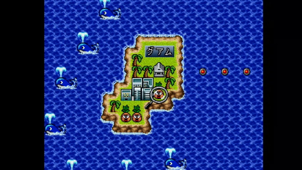 ゲーム中にメニュー画面から「その他」の「ちいきデータ」を選択したら、グアムの駅の下にあるパイナップルにカーソルを合わせて「決定ボタン」を押そう。