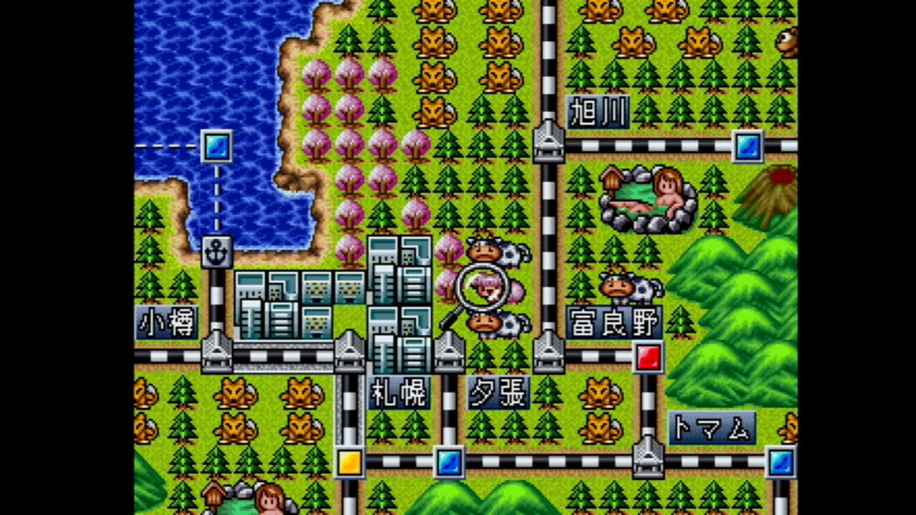 ゲーム中にメニュー画面から「その他」の「ちいきデータ」を選択したら、夕張駅の上にある2頭の牛の間にいる羊の頭にカーソルを合わせて「決定ボタン」を押そう。