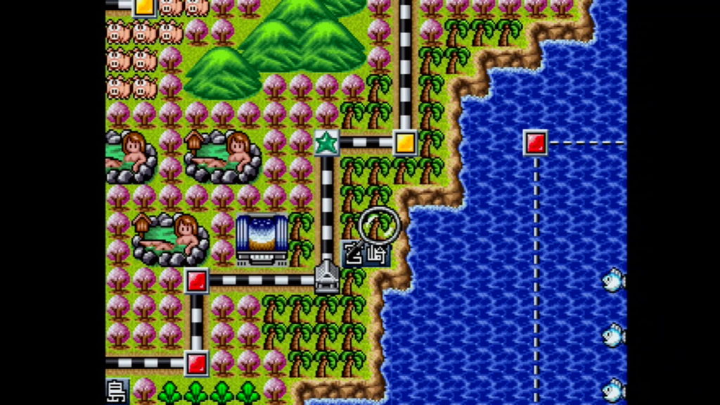 ゲーム中にメニュー画面から「その他」の「ちいきデータ」を選択したら、宮崎駅から上に2マス、右に2マスの場所にあるヤシの木にカーソルを合わせて「決定ボタン」を押そう。