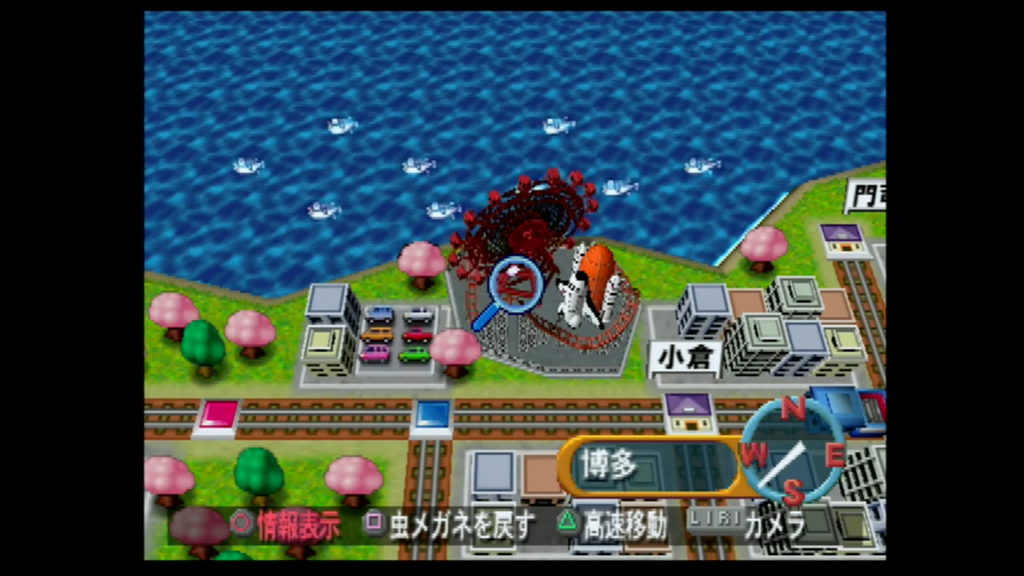 「桃鉄九州編」でメニュー画面から「その他」の「地域データ」を選択したら、福岡県の博多駅の近くにあるスペースワールドにカーソルを合わせて「決定ボタン」を押そう。