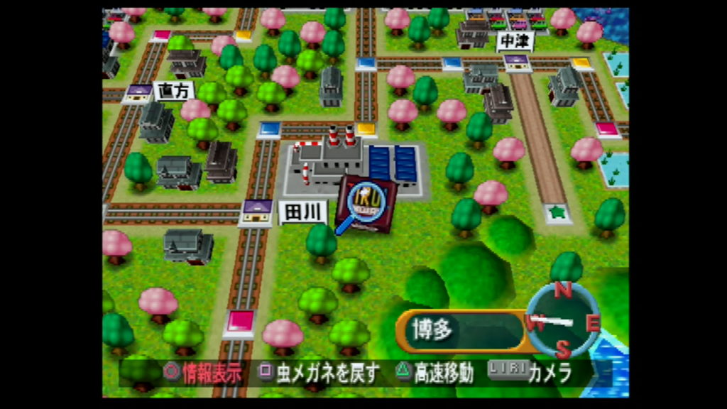 「桃鉄九州編」でメニュー画面から「その他」の「地域データ」を選択したら、福岡県の田川駅の近くにあるチロルチョコにカーソルを合わせて「決定ボタン」を押そう。
