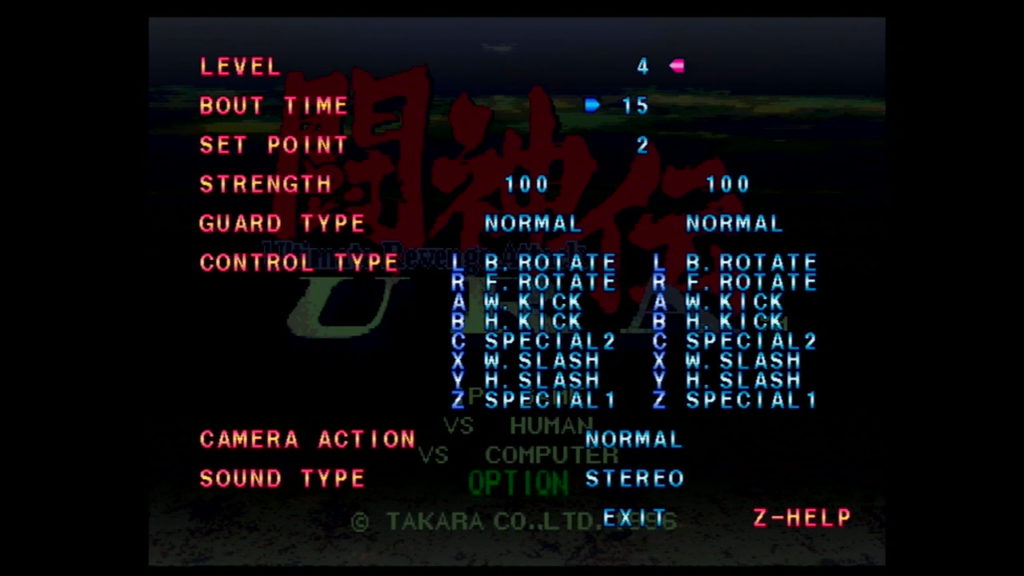 「OPTION」モードで「BOUT TIME」にカーソルを合わせたら、「Xボタン」+「Yボタン」+「Zボタン」+「Lボタン」+「Rボタン」を同時に押そう。