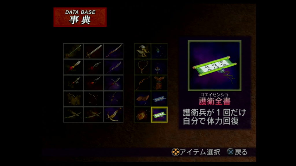 「護衛全書」のみ護衛兵装備アイテムとなっている。