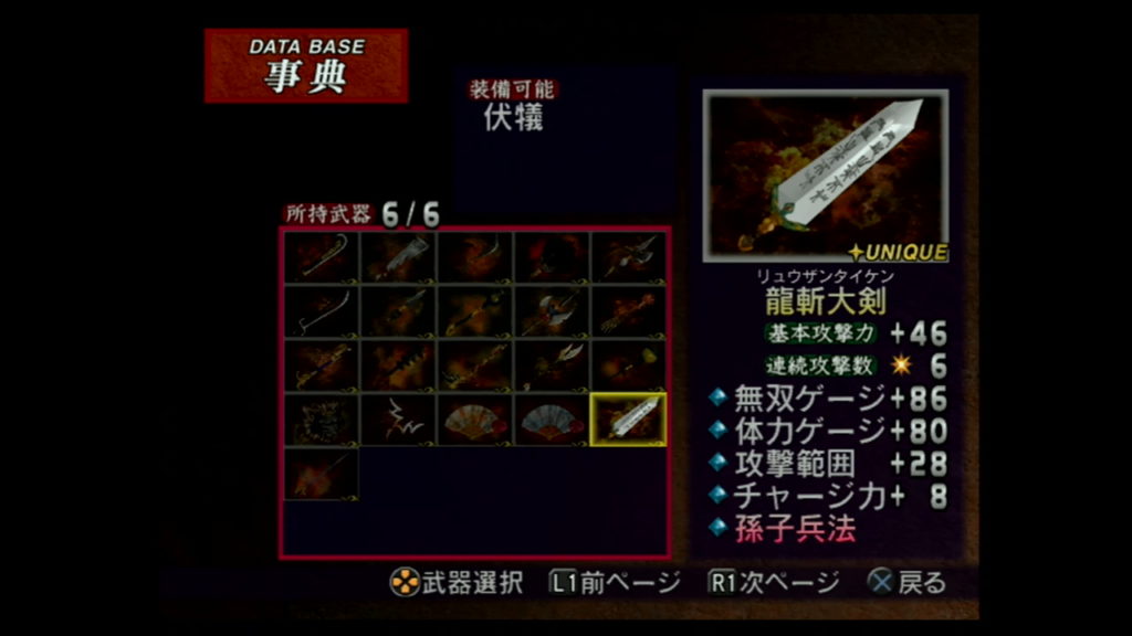 「オプション」モードの「ゲーム設定」で「難易度」を「最強」に設定し、「無双モード」か「フリーモード」の「猛将伝」で以下の条件を満たすと、「その他」の「第5武器」が手に入るぞ。